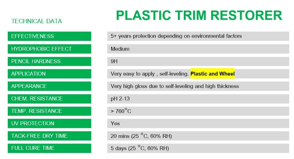 A venit momentul să redați suprafețelor din plastic ale mașinii dumneavoastră aspectul de nou. Plastic Trim Restorer de la CleanX a fost creat cu o formulă inovatoare ce nu doar maschează semnele de uzură, ci acționează în profunzime pentru a revitaliza plasticul decolorat și a-i reface intensitatea culorii.